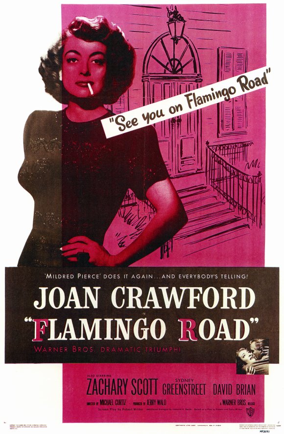 Flamingo Road is a classic tale of an outsider shaking up an idyllic town. Joan Crawford is Lane Bellamy, a salty and street-smart carnival dancer, who, with the help of deputy sheriff Fielding (what a name!) Carlisle (Zachary Scott), finds a new job as a waitress in a sleepy southern town. Lane and Fielding hit it off a bit romantically, much to the disdain of abominable, corrupt Sherriff Titus Semple (an excellent Sydney Greenstreet) who has his sights on shaping Fielding to be Governor. Lane and Fielding soon clash, thanks to Semple's meddling, and Lane winds up working in a roadhouse run by tough, well-respected Lute (Gladys George). There she meets and wins the affection of a rich business man Dan Reynolds (David Brian). Soon enough Lane ends up in fur coats, living in a mansion on the town's most enviable street, Flamingo Road, but not without some bumps along the way.