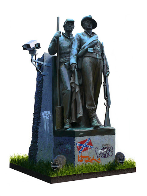 "For me, the animals stand for and act in a place of both innocence and determination. I use the cityscape to juxtapose the “wild” implication of the animals. In psychological terms it is a play between order and chaos, instinct and reason. On the political level, it is rules and authority – and anarchy." - Josh Keyes