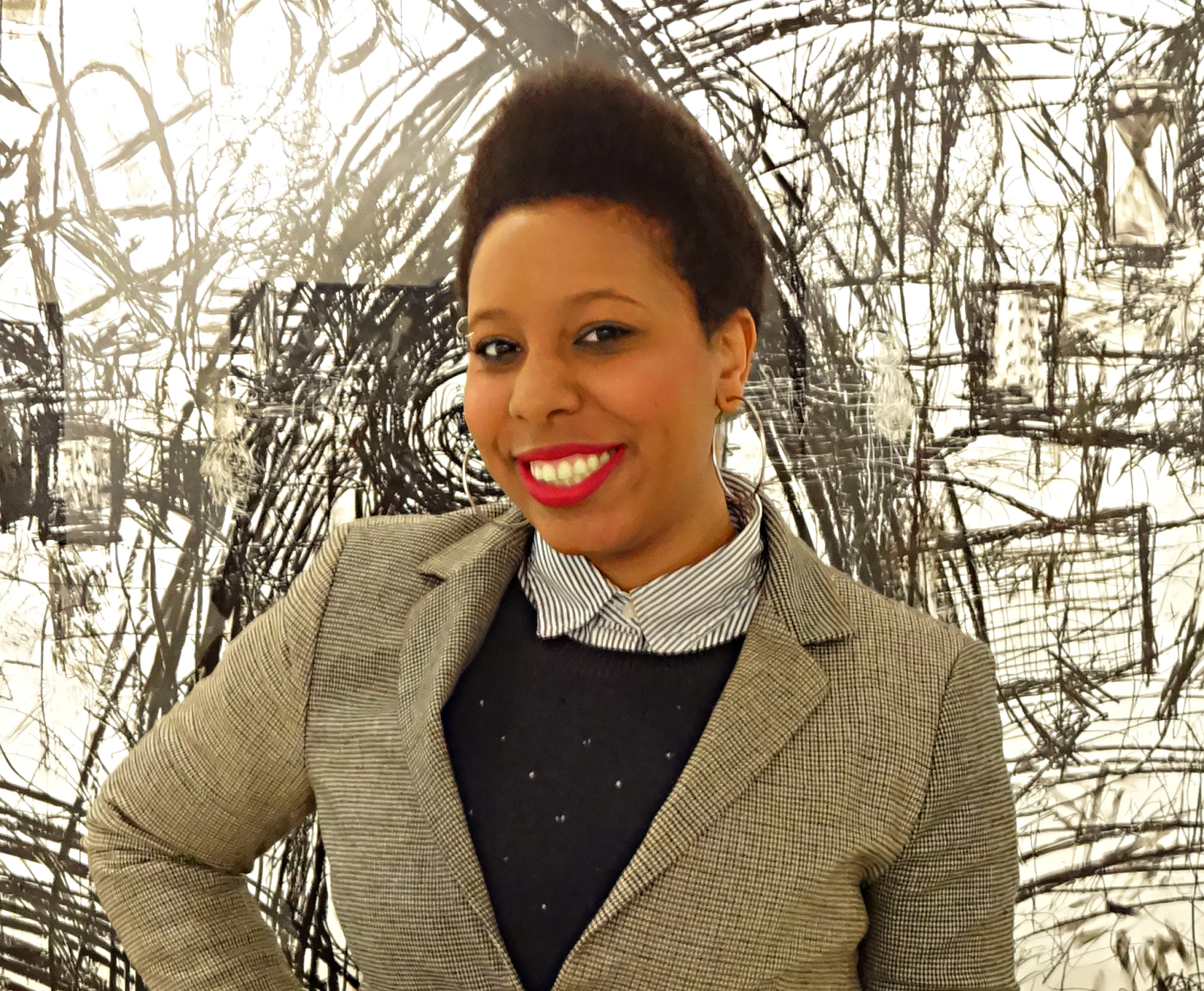 the doorman looks up from his latest drawing,