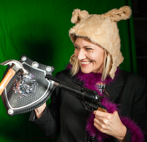 I’m holding a roll of gift-wrap paper decorated with animated characters—