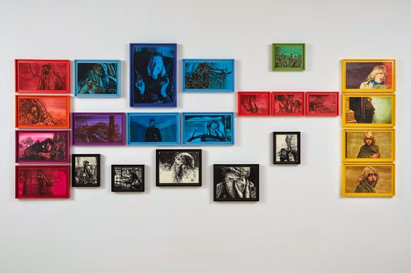 The keenly designed but never too on-the-nose interiors (production design by Sergio De La Vega; art direction by Sam Kramer) give insight into character--from the cheesy "Miami Vice" and fish tanked pad of the terribly tattooed (Pac Man and SEX et al) buffoon "Pimp" (Dominic Rains), the curtained ramshackle apartment with its poignant map of the world on the wall of "The Prostitute" (Mozhan Marnòto) to "The Girl's" disco-balled Bee Gees, Prince and other retro icon-walled room (I was intensely staring at a Madonna-inspired poster, trying to figure out who it was... turns out it's Margaret Atwood!). Like that poster, Amirpour's work seems to embrace an array of influences from filmmakers (David Lynch, Sergio Leone, maybe even Kathryn Bigelow, especially Near Dark), storytellers and also pop videos (Amirpour herself is a musician). I recognized many nods to other movies throughout including Jim Jarmusch's Dead Man. Coincidentally, Jarmusch released his own moody vampire flick this year--the ballyhooed Only Lovers Left Alive. It turns out that Amirpour's film is the more impressive one--definitely much more strange, electric and seductive, especially because of the remarkable cinematography by Lyle Vincent. Sure anamorphic black and white usually automatically looks alluring on film, but there is much more to Vincent's work--the unusual perspectives (loved the straight-on shot of the downward hill and a shots of a fork grazing over egg yolk), careful lighting and character positioning. There are miraculous accidents of some humorous feline reactions. The pacing is a bit languid and at times I thought the film moved a little too slow (I have grown a bit weary from the 2010s arthouse trend of staring, stoic characters) but the images Amirpour and Vincent capture are occasionally breathtaking. The soundtrack too is incredibly vivid and well-timed--a stellar, Tarantino-esque bevy of haunting oddities (hopefully they will be available together soon!). According to Amirpour, "the soundtrack was very much a part of the design of the film, at the script level. Each song you hear was picked in advance, and the power of music is so massive that it leads the way in the filmmaking." It will indeed be exciting to see the gifted Amirpour lead the way for a new generation of filmmakers. ***1/2